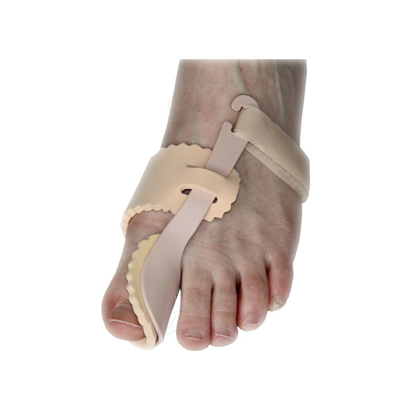 Férula nocturna para aliviar el dolor y mantener el pie en posición correcta. Esta férula permite mantener el pie en una posición adecuada durante la noche, ejerciendo una presión contra el juanete que reduce el desarrollo del mismo y evita el dolor.