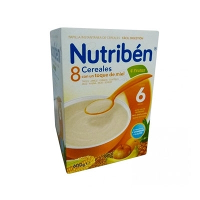 Nutribén® 8 cereales y miel 4 frutas es una papilla instantánea de cereales destinadas para niños a partir del 6º mes.