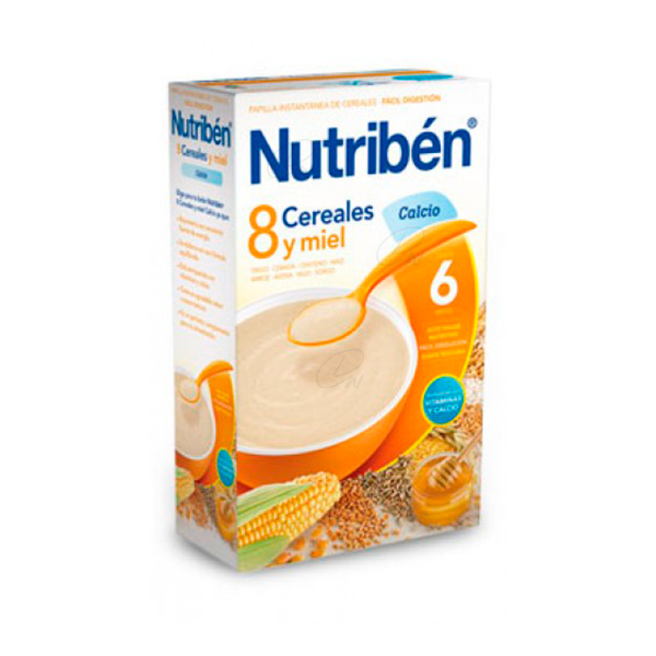 Nutribén® 8 cereales y miel calcio es una papilla instantánea de cereales destinadas para niños a partir del 6º mes.